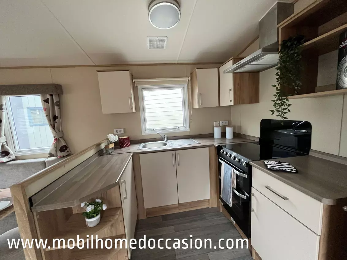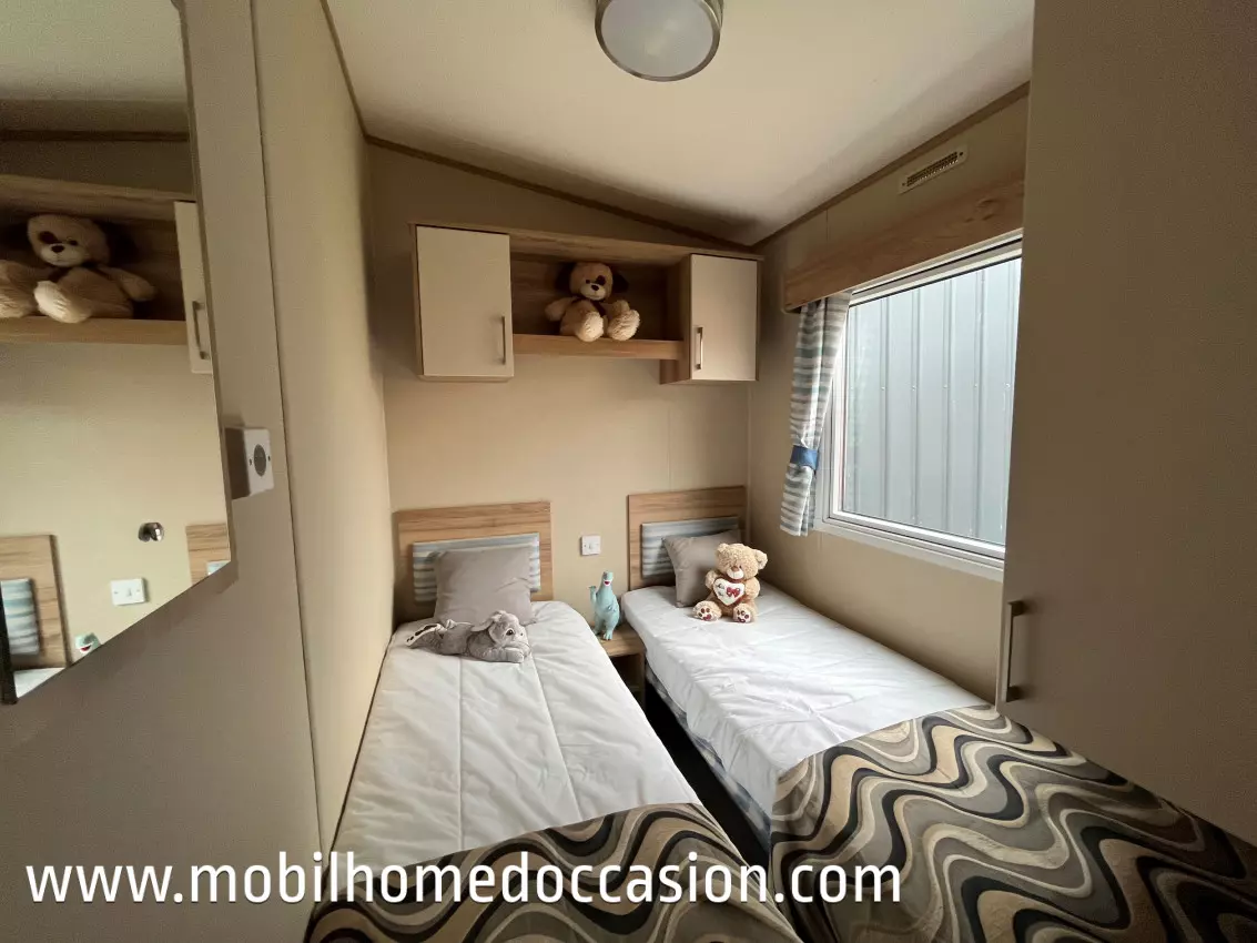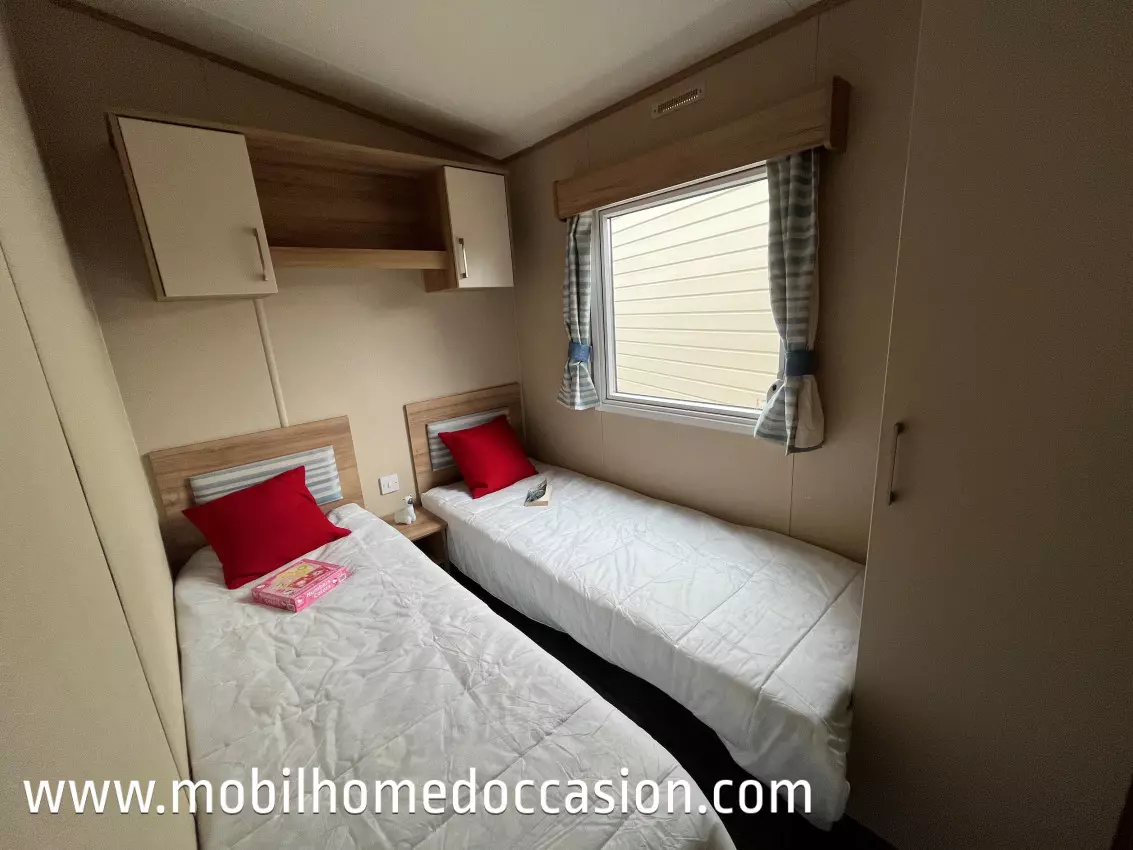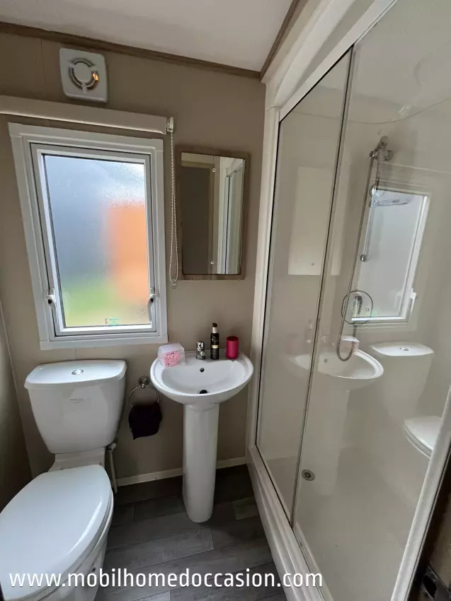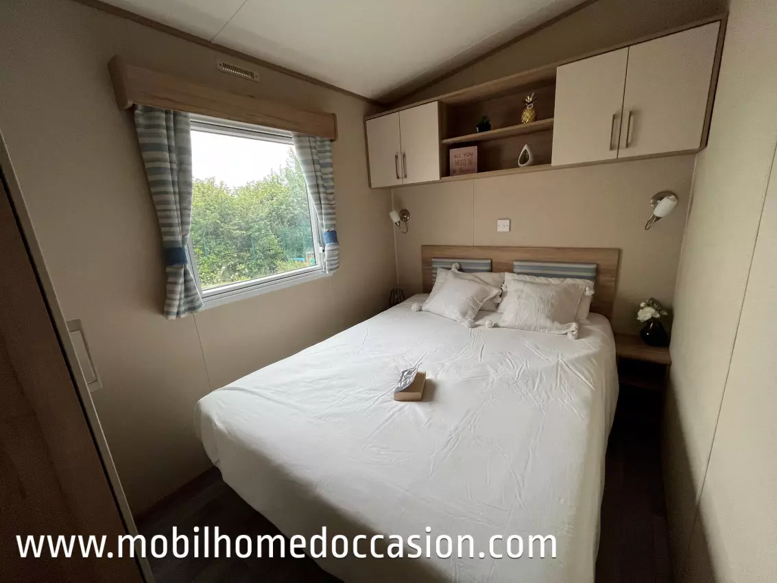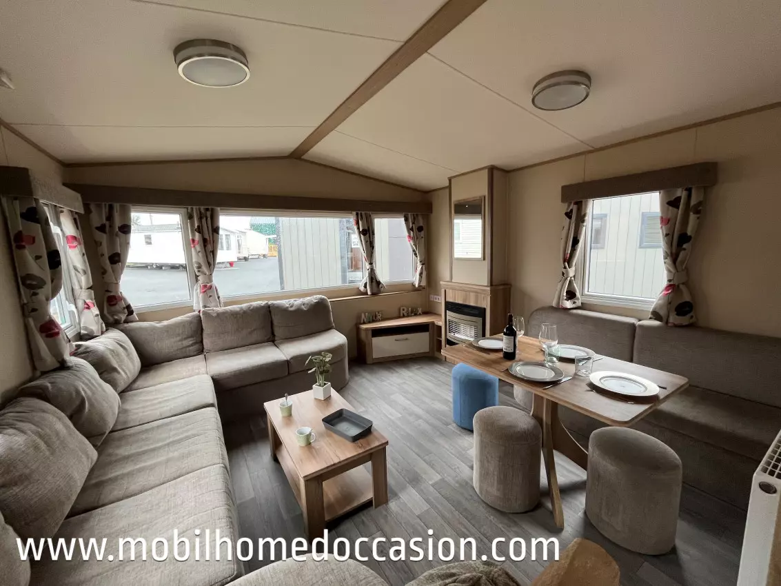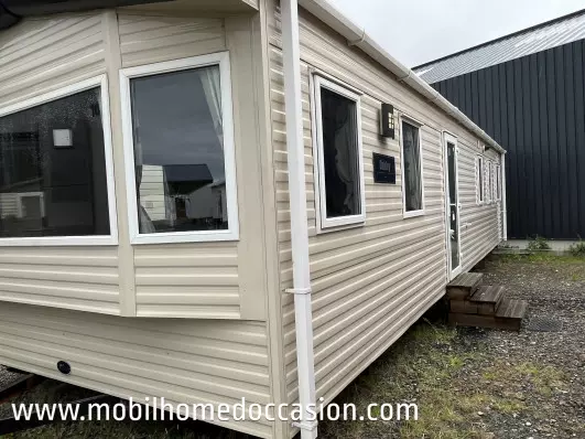Mobildiscount vous propose ce mobil home anglais d'occasion à implanter sur un terrain ou une parcelle de camping, ou parc résidentiel de loisirs (P.R.L). Nous livrons et installons nos mobil home en Bretagne et Normandie, et livrons sans installation sur toute la France.